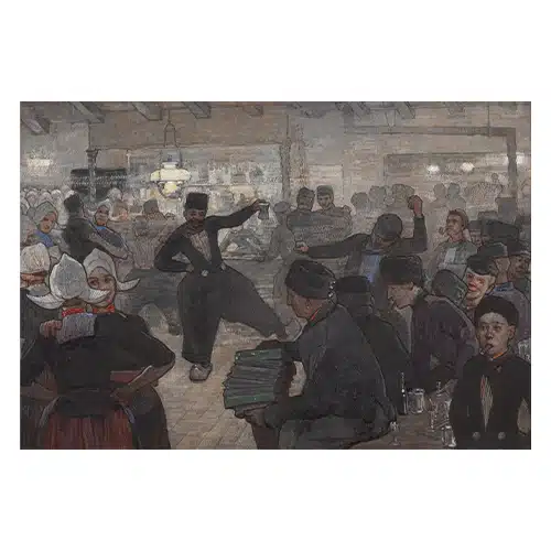 Wanneer we aan Volendam denken, denken we aan muziek en aan toerisme. De klederdracht van Volendam staat inmiddels symbool voor Nederland. Dat alles is te danken aan de kunstenaars – want Volendam was tot de Tweede Wereldoorlog een kunstenaarsdorp van formaat. Sinds de ‘ontdekking’ van Volendam in 1873 door Henry Havard (1838– 1921) kwamen er kunstenaars van over de hele wereld naar het vissersdorp. Volendam zag er exotisch uit met zijn groene huisjes aan de dijk, een haven vol vissersschuiten met roodbruine zeilen, hurkende mannen met bontmutsen en meisjes met witte kanten mutsjes op hun hoofd. 1.800 kunstenaars uit de hele wereld bezochten het dorp. Volendam werd het grootste kunstenaarsdorp van Europa. Middelpunt van het kunstenaarsdorp werd vanaf 1881 Hotel Spaander. Leendert en Aaltje Spaander en hun 7 mooie dochters wisten hun hotel goed te verkopen. Zo gingen ze in klederdracht naar openingen van tentoonstellingen onder meer in London. Ze stuurden gericht ansichtkaarten van hun hotel en van het pittoreske Volendam naar kunstacademies over de hele wereld. Leendert liet een schilderij maken door Carl Windels (1869–1954) met de tekst ‘Artist Kom Binne’ – duidelijker kon niet. Leendert Spaander (1855–1955) wilde graag een werkje aan de muur in ruil voor logies. Dat was het begin van de internationale schilderijencollectie van Hotel Spaander. De schilderijen en tekeningen sieren ook vandaag de dag nog de wanden in de oude herberg, de lounge en de gangen van het hotel. In 2021 bestaat Hotel Spaander 140 jaar.